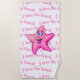This beach towel is shown in a cute pink and white starfish print.