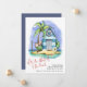 Beach Tropical Watercolor Moving Announcement features a fun watercolor of a beach house on a tropical island with palm trees and flowers. Below is the text "We've Moved to the beach" in modern hand lettered calligraphy script typography with your new address and custom text below. Designed by ©Evco Studio www.zazzle.com/store/evcostudio