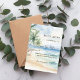 The matter paper is our sample of choice -- it's a reasonably priced, good quality, nice feeling paper stock. We were a little concerned the muted rustic blues might not reproduce all that well (usually by light colored samples), but they're just gorgeous! The white lettering is perfect in combination with the blue background, and the typography is all easy to read.