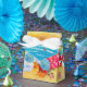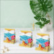 Waves on a sandy beach and sunbathers under colorful umbrellas, these ribbon closure tent style party favor boxes are fun for any summer occasion.