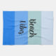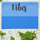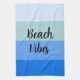 Cool blue and light green stripes pattern and a customizable text saying: Beach vibes. Fits a cheerful marine style.