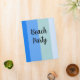 Cool blue and light green stripes pattern and a customizable text saying: Beach vibes. Fits a cheerful marine style.