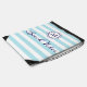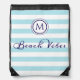 Beach Vibes Blue White Stripe Coastal Monogram Drawstring Bag