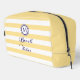 This classic striped toiletry bag makes a fresh and sunny addition to your summer travel accessories. Patterned with buttermilk yellow and white wide stripes, this beach-inspired bag displays your initial as a monogram in a round porthole-style 'frame' for a nautical touch. The 'Beach Vibes' words in script typography add breezy, laid-back charm, perfect for summer holidays, seaside vacations, weekend getaways and everyday essentials. Simply click the "Personalize" button to edit the template with your initial.