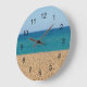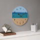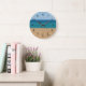 Beautiful beach themed wall clock with blue, turquoise and tan colors, Great for any beach themed room.