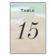 Seat guests at a beach wedding reception with cards containing an image of the waves along shoreline. Pretty blue-green water and white surf, lap at the smooth beach sand. Include the word table at the top (or remove it) and add each table number individually to these vertical cards. We have matching place cards.