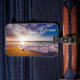 Your luggage will be instantly recognizable with this west coast beach luggage tag, complete with your own last name in the top right corner!
