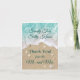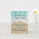 The playful and fun saying, Sandy Toes Salty Kisses Thank You from the Mr. & Mrs. accents this Wedding Photo Thank You Card on a background of turquoise water, beach sand, seashells, starfish and sand dollars. The inside of this card can easily be personalized with a wedding photo, and there is lots of room to write your own thank you message. If you need help customizing this card, or need additional coordinating items, just contact us at prettyfancyinvites@gmail.com with your request. A non-photo version of this card is also available in the Turquoise Waves Wedding Collection.