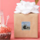 This envelope seal offers a beautiful way to further personalize your beach wedding invitations. This photo captures a large piece of driftwood that has been washed up onto a Pacific Ocean beach and has slowly formed a hollow circle in it's center. The brown sand compliments the blue sky studded with layers of clouds. The bride and groom's name along with the wedding date can easily be personalized.