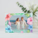 Beach wedding blue pink tropical PHOTO thank you Card
