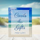 A beautiful ocean waves photo decorates this modern destination wedding cards and gifts foam board sign. Pretty blue cursive script over the tropical seaside photograph for your beach wedding sign.