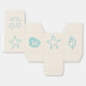 Starfish and seashells decorate this beach themed wedding favor box. Personalize this box by changing the text. The design is from original art.