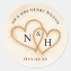 Seal your wedding favors with a wave of romance using these round beach wedding stickers. Featuring intertwined hearts drawn in the sand beneath soft ocean watercolor, these personalized labels add a warm, coastal touch to cookie bags, candle lids, and gift boxes. Ideal for tropical, seaside, or destination weddings.