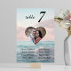 Add a personal touch to your beach wedding seating chart with these romantic table numbers. Featuring your photo in a heart cutout, your names, and wedding date, each card sits on a dreamy ocean and pastel sky background. A beautiful way to guide guests to their seats while tying in your coastal theme with elegance and love.