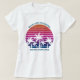 Cool matching beach t-shirts for your bridal party to wear to a bachelorette party for an island destination wedding. Features beautiful palm trees in front of a pretty pink beach sunset. Perfect tropical custom tees for your summer trip to the sea.