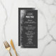 elegant black and white beach wedding menu cards. Chalkboard style fashionable and modern wedding menu.