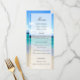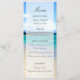 For the beach bound bride and groom, here's an easy to customize wedding menu template for your reception. Sparkling blue ocean in the background with sandy beach and blue and white clouds. Lovely photo; lovely for your beach parties!