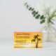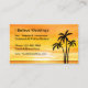 Tropical beach wedding business card online template design created with a beautiful scenic sunset in the background along with palm trees silhouette. Designed for Christian weddings, a wedding Minister or Officiant.