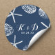 Beach Wedding Navy Blue Seashells Wedding Favor Classic Round Sticker