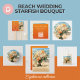 This beautiful illustration portrays the idea of a coastal beach wedding ceremony, the appropriate card for the seaside theme, with a whimsical flair that makes it a distinctive design for a unique bride. The entire set of design cards is accessible in the same design.