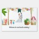 Celebrate love in paradise with this tropical / beach wedding-themed sign, featuring vibrant illustrations of a bride and groom , tropical drinks, lush flowers . The back has a place holder to add picture of the bride and groom . A template to add custom text, this design captures the joy and romance of a destination wedding. Its colorful and lively aesthetic adds a touch of tropical magic to any celebration.
