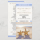 cute modern beach wedding programs with starfish couple, sand and waves.