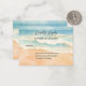 A watercolored sandy beach, ocean waves and blue sky. Personalize and add the reply by date.
