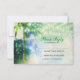 beach or destination wedding RSVP card with ombre sea green and teal blue color tones with lights palm trees