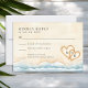 This elegant RSVP card is the perfect complement to your beach or destination wedding suite. Featuring soft watercolor ocean waves, sand tones, and two hearts drawn in the sand, it captures the romance of a coastal celebration. Easily customize with your reply date, names, and guest options to create a personal and coordinated stationery set.