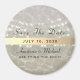Simple, modern calligraphy, elegant, gold beach wedding save the date invitation magnet with ocean, sand and string lights.
