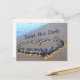 Beach wedding save the date postcards with a heart drawn in the sand. Easy to use template - just enter the names of the Bride & Groom, along with the wedding date in the space provided.