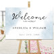 This simple minimalist beach wedding sign features classic and modern script fonts on a dusty blue and white ocean inspired watercolor abstract background. You can easily personalize this ocean wedding sign with your own details using this ocean-themed design and coastal color palette. It’s versatile and can be used to match any many beach themed wedding ideas and decor. These minimal and elegant beach wedding invites work for tropical weddings as well as nautical weddings in cooler climates. Perfect for couples who love the sea!