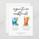 This chic beach signature cocktails list features simple black typography above 2 seaside drinks and their ingredients for your coastal wedding bar. A cute Blue Lagoon and Long Island Iced Tea drawing add a cool flair to your bar menu. Complete with the couple's names and date for their reception.