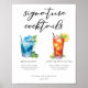 This chic beach signature cocktails poster features simple black typography above 2 seaside drinks and their ingredients for your coastal wedding bar. A cute Blue Lagoon and Long Island Iced Tea drawing add a cool flair to your bar menu. Complete with the couple's names and date for their reception.