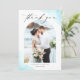 Express your gratitude with this Photo Beach Wedding Thank You Card, featuring a serene blue watercolor splash and elegant calligraphy framed in a modern arch design. Perfect for summer weddings, it showcases your favorite photo to capture the essence of your special beach day. Customizing it is simple, but I’d be happy to help you create a card as unique as your wedding memories!
