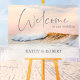 This ocean sunset beach wedding welcome sign minimalist modern script font on a warm coastal waves background. Part of our beach wedding stationery suite, this unique beach themed wedding sign can be personalized with all your own wording and details. From Florida to Hawaii or from a tropical wedding to an ocean-themed seaside resort celebration near the waves, this beach wedding sign will fit right in!