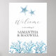 Welcome guests to your beach wedding with this elegant wedding welcome sign, featuring watercolor starfish and sea coral in stunning shades of blue. Inspired by the beauty of the ocean, this coastal-themed design sets the perfect tone for a seaside celebration.