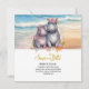 Celebrate love by the sea with this elegant Ocean Breeze Beach Wedding Invitation, designed in a soft, modern watercolor style. Featuring a charming hippo character, the artwork captures a peaceful coastal atmosphere with turquoise waves, sandy tones, and delicate tropical flower decorations.