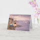 One in a series of at least seven designs of a couple in love on the beach with the waves lapping the shore, and a beautiful sunset in the cloudy sky. The image of the plain beach scene, without the couple, is available on postcards and a postage stamp to match.