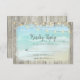 These are the matching RSVP cards for the Rustic Beach Wood Wedding Invitations. String Lights decorate the top of the card, with a picture of ocean waves crashing against the beach in the background, framed with weathered wood.