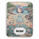 A pastel-hued chibi girl with a playful bob of purple hair and bright blue eyes is on the sandy shore, engrossed in the miniature world of rock pools. Sunlight filters through the clear water, illuminating the hidden treasures within. The tide has receded, leaving behind an array of fascinating creatures, each one a wonder to behold. Did you know that some species of sea anemones can live for over a century?