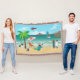Indulge in a coastal escape with our Beachside Fun Throw Blanket. This delightful throw blanket features a captivating cartoon illustration of a beach scene, capturing the essence of a perfect beach day. With a boat, beach chairs, and a beach umbrella, this blanket invites you to relax and unwind. Let the cheerful atmosphere of two kids sailing towards the shore, accompanied by playful ducks, a flying pilot, and a cruising ship, bring a touch of joy and tranquility to your cozy moments.