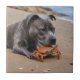 "Beachside Pals: A Staffy and Its Crab Companion" Ceramic Tile