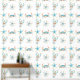 Coastal pastel blue, red and light green lobster, crab, sand dollar and starfish beachy tropical stick and peel wall paper.