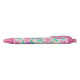 Very nice blue, or black ink pen. I will be buying more. The print was fine. I can easily see the print. The flowers look great.