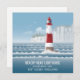 Colourful artwork of Beachy Head Lighthouse and the white cliffs along the East Sussex coast near Eastbourne. With Belle Tout Lighthouse on the top of the cliff in the background.