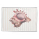 Add to your beachy bedroom theme with this pretty pink and tan conch seashell pillowcase! The background color is a beige sandy like color with accenting white stripes. It can be customized to suit your preferences.