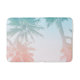 A cute vintage style beach bath mat with tropical palm trees at sunset.