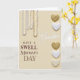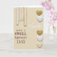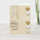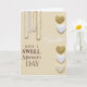 Designed with a soft creamy beige background, this card sets a gentle, affectionate mood right away ❤️. From the top edge, several vertical strands of round beads in milky white with faint golden warmth hang down like jewelry, catching a quiet, diffused glow. Along the right side, a neat column of heart shapes alternates between textured, shimmering gold and smooth glossy white, ending with an off-white heart that has a slight pearly sheen 🌼. Near the center, the word “Grandma” appears in flowing white lettering, standing out softly against the warm backdrop. Beneath it, “HAVE A SWELL” and “Mother’s DAY” are arranged in deep maroon lettering, with the lines stacked to feel balanced and easy to read. The bead strands and hearts feel like they’re leaning toward the message, adding a tender, close-knit warmth without needing any extra fuss. The lighting stays even and gentle, showing the reflective beads and the different heart textures clearly, especially the gold hearts along the right edge.