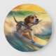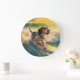 Beagle Beach Surfing Painting Large Clock